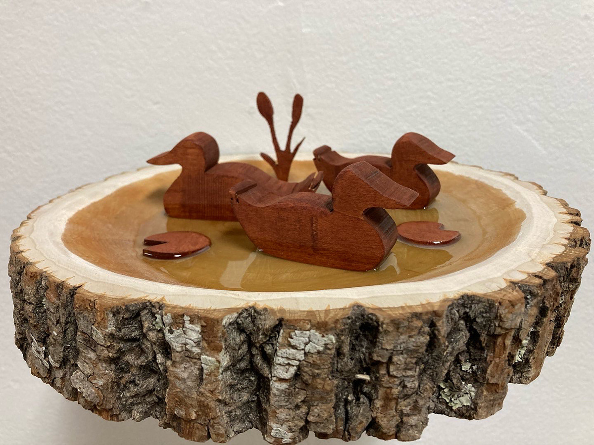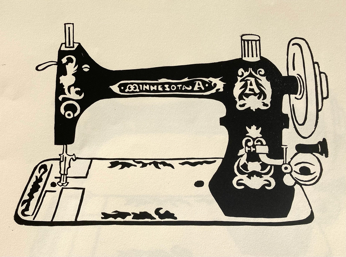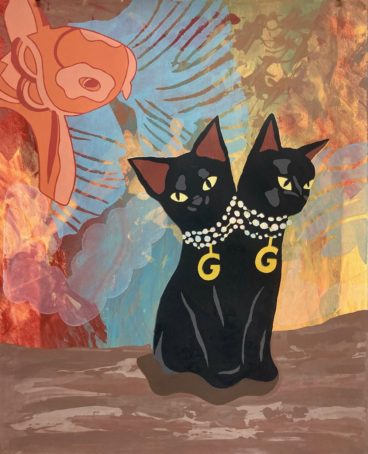 Linoleum prints in variations of black, blue, gold ink. 20in x 16in